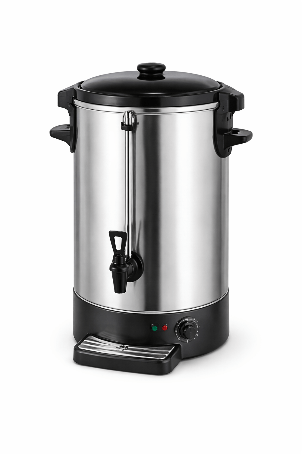 Der praktische Auslaufhahn ermöglicht ein einfaches Ausschenken, während wärmeisolierte Griffe und Sicherheitsfunktionen für einen sicheren Betrieb sorgen – ideal für Events in ganz NRW.
